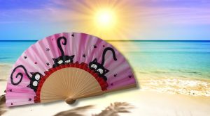 En vacker samling handritade och handmålade solfjädrar i natursilke.