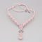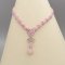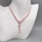 Voici un collier rose clair, en micro-macramé, réalisé avec deux perles en quartz rose et un apprêt en forme de lotus en acier inoxydable.