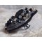 L’arrière est en simili cuir marbré avec un support de bague filigrané noir.