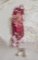 Les matériaux qui le composent sont : cabochons camé facetté en résine rose, perles  nacrées bordeaux et ivoire,   fleurs lucite,  nœuds ruban vichy, dentelle, calottes argentées filigranées, anneaux, embouts décorés, perles Miyuki Shrink white et  rocailles Miyuki la finition est faite avec un mousqueton et une chaîne en argent 925 maille forçat.