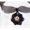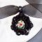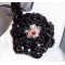 Cabochon artisanal de Murano orné de toupies en cristal de Swarovski, des facettes en verre et de belles rocailles noires.
