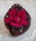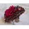 Le tout est monté sur un support de bague de couleur bronze avec l’arrière en similicuir rouge/noir.