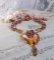 Le pendant est fait d’une coupelle filigranée, de calottes bronze,, d’une boule cuivrée, d’une goutte zébrée orange/doré et d’une perle ronde en cristal de Swarovski.