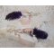 Accessoires en laiton : clous tête boule et anneaux (galvanisation argentée), coquilles fleurs (galvanisation rhodié).