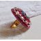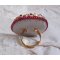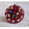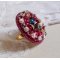 Le motif principal est brodé avec une grande coupelle dorée où j’ai agrémenté à l’intérieur 1 strass rubis avec des perles nacrées rouges, bleu, vert, ivoire et des toupies en cristal de Swarovski.